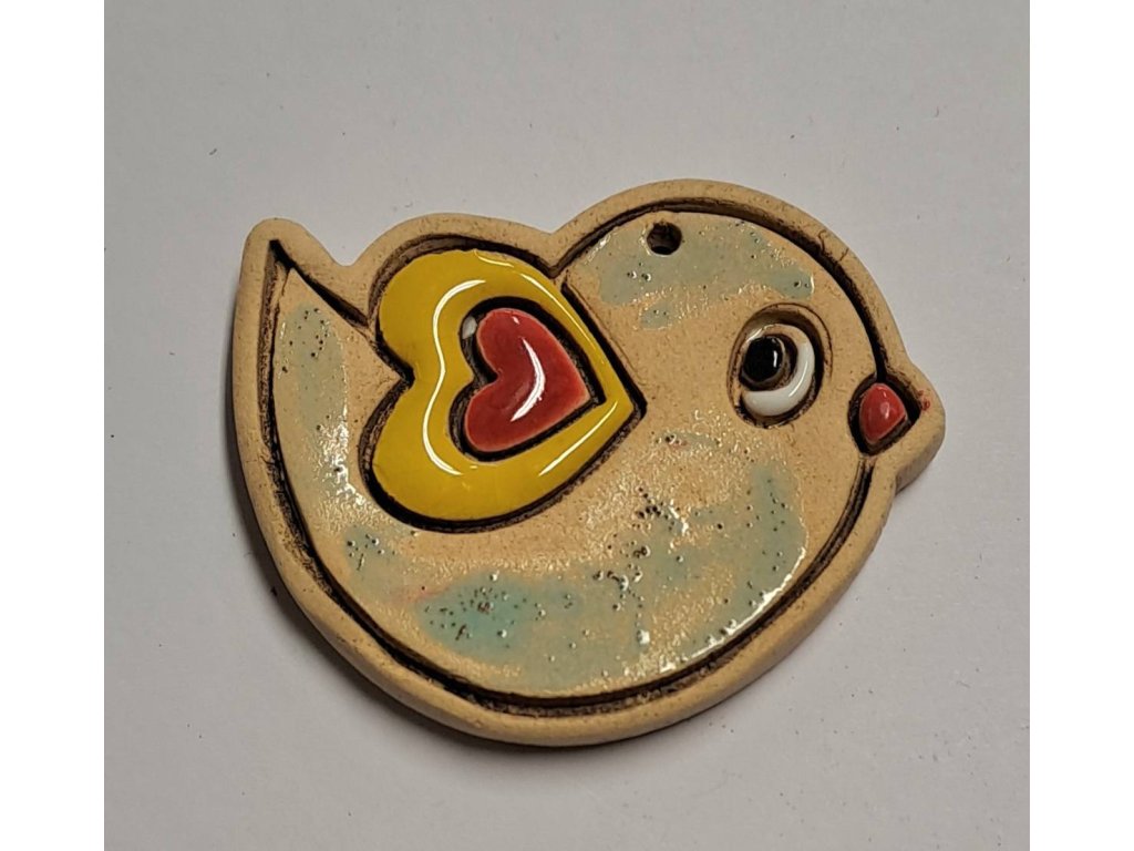 Malý ptáček s žlutočerveným srdíčkem s dírkou- 4,5 cm