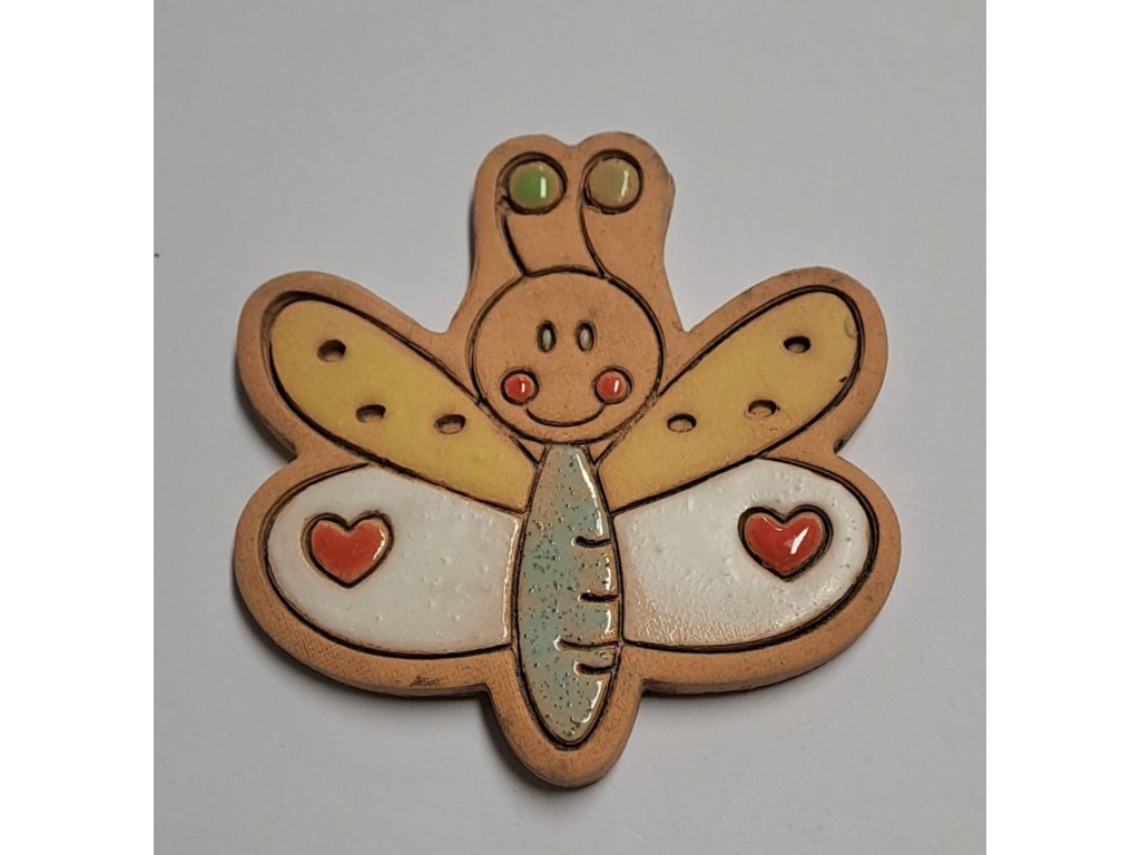 Motýlek bíložlutý se srdíčky - 7,5 cm