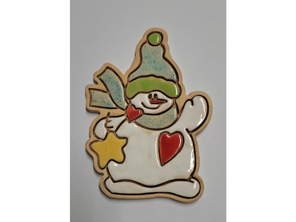 sněhulák s žlutou hvězdičkou a srdíčkem