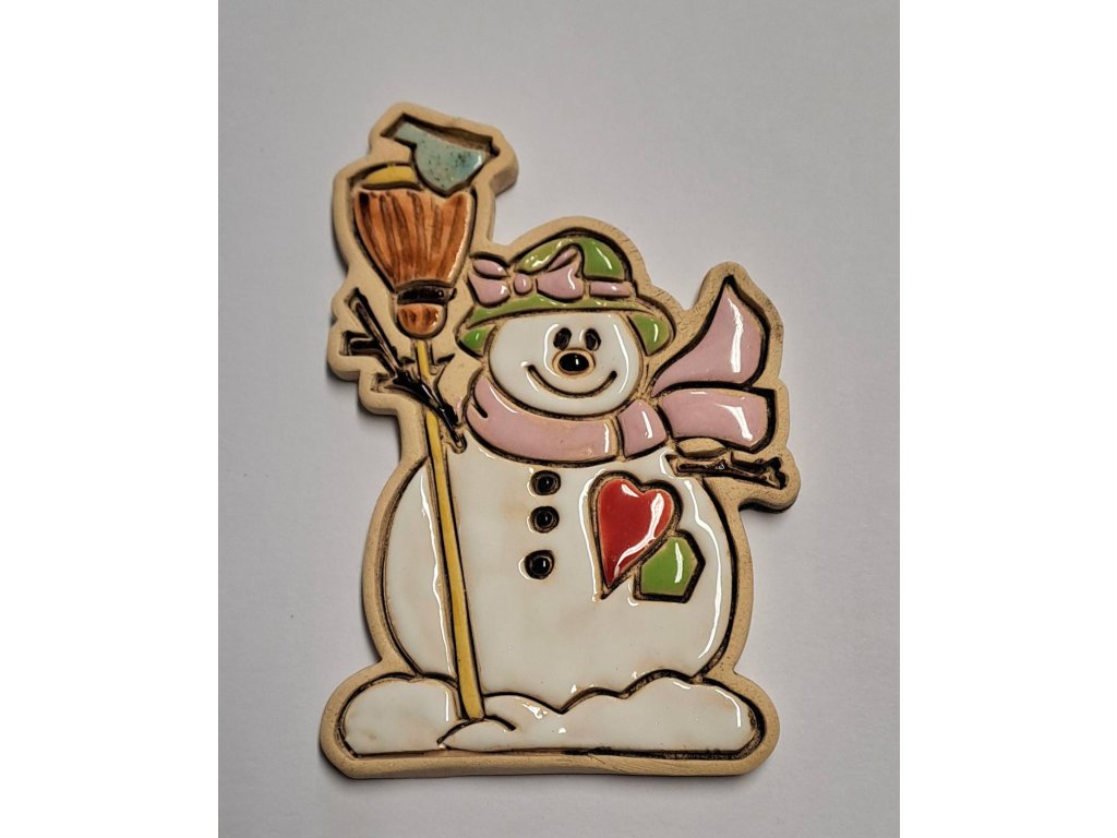 sněhuláková dáma se srdíčkem a růžovou čepičkou