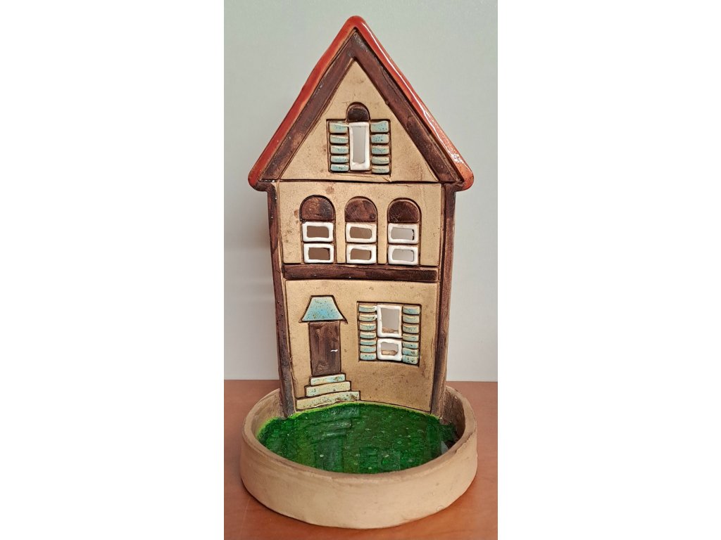 Svícínek na čajovou svíčku v podobě domu se špičatou střechou - 17 cm