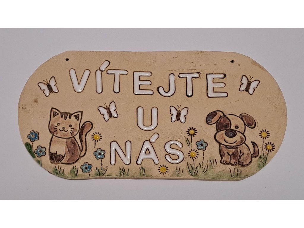 vítací cedulka s pejskem a kočičkou